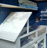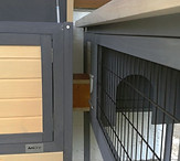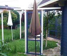 ..... im Mai 2015 begannen wir mit dem Bau des Außengeheges. Ein Regal wurde zum Stiegenhaus umfunktioniert und Gitterelemente bildeteten die Umrahmung. Vorerst beschatteten wir noch mit Sonnenschirmen, ein fixes Dach folgte erst ein Jahr später. Rundherum Schilfgras angepflanzt - sorgte seitlich für angenehmen Schatten. Der Sommer und Herbst waren wunderbar, die Tiere genossen die neue Freiheit sehr. Gegen Jahresende 2016 kam es leider wieder zu gesundheitlichen Problemen....