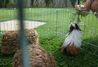 ..... nach Puppes Tod holten wir uns drei Schweinchen von der Meerschweinchenfarm. Fipsi, Puppe (2) und ihr Kind Zergi (2). Fipsi sieht David ähnlich - sie hat einen ganz lieben Charakter. Auch Puppe sieht ihrer Vorgängerin ähnlich. Die kleine Zwergi ist frech und vergnügt. Sie ist mir sofort ans Herz gewachsen. Sie ist die einzige, die ihr Fressen mit den Pfoten festhält. Sie ist unser "Futtermelder" - sobald man sich dem Gehege nähert, beginnt sie zu quietschen.